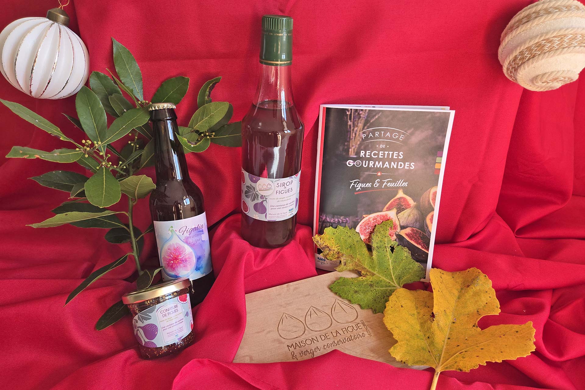 Confiture de figue avec les figues issues du verger conservatoire de Vézénobres ; tartinable ail (ou aubergine) et figue, une alliance surprenante et raffinée entre l’ail confit et la figue, pour un tartinable sucré-salé aux notes douces et aromatiques ; pâté à la figue élaboré à partir des figues fraîches du verger de Vézénobres ; limonade artisanale à la figue aux arômes et infusions naturels de figue, alliant subtilement raffinement et gourmandise.